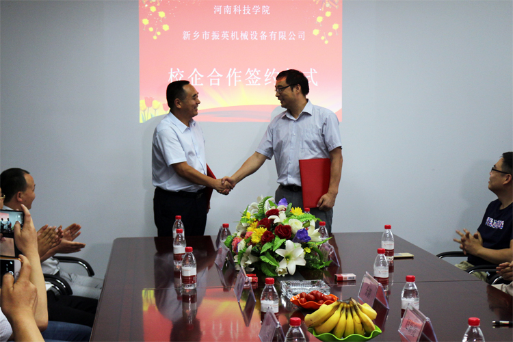6月25日,新鄉(xiāng)市振英機械設(shè)備有限公司、河南科技學(xué)院正式進行校企聯(lián)合人才項目簽約,并正式成立校企共同教學(xué)實習(xí)基地.